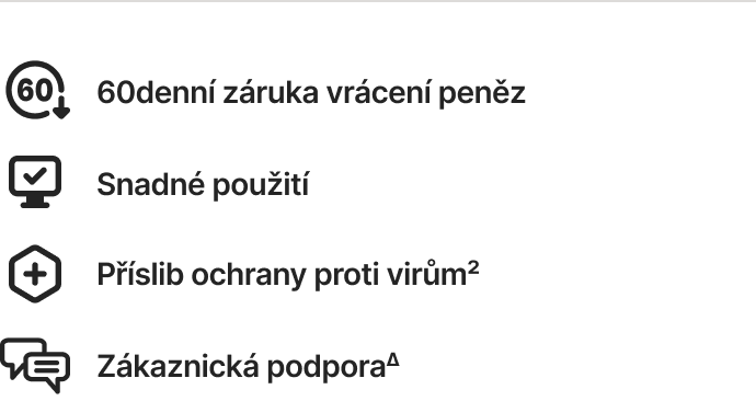2 Na tuto nabídku se mohou vztahovat omezení. Pokud chcete službu odstraňování virů využít, musíte mít aktivní automaticky obnovované předplatné k zabezpečení zařízení s ochranou před viry. Podrobnosti najdete na Norton.com/virus-protection-promise.